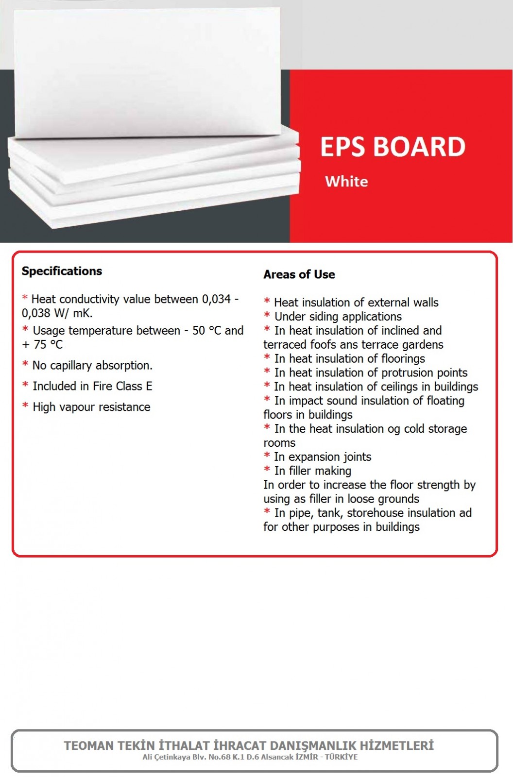 2013 yılından itibaren danışmanlık hizmeti haricinde, ihracat alanında Yalıtım sitemleri ile İnşaat sektöründe kendini göstermiştir.